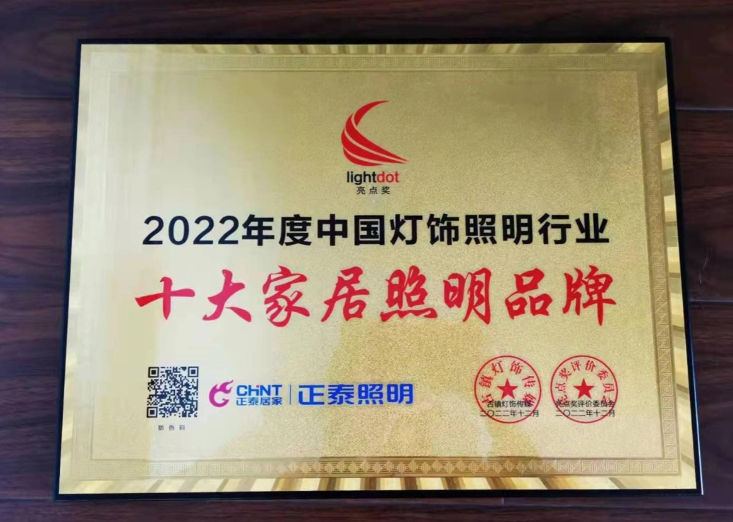 此次中國燈飾照明行業品牌大會評選活動上正泰照明突出重圍,榮獲亮點獎2022年度“十大家居照明品牌”榮譽稱號是對正泰照明實力的認可。