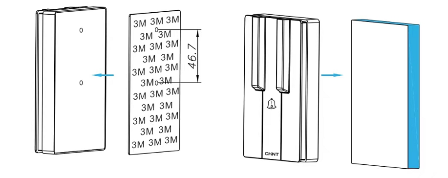 正泰居家無線門鈴是一款自發電門鈴。這類無線門鈴的接收器插在屋內的電源插座即可,而發射器主要有雙面膠粘貼法和自攻螺絲安裝法兩種。